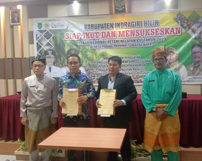 Penandatanganan Nota Kesepahaman (Memorandum of Understanding) dilakukan sempena kegiatan pelepasan peserta Pekan Nasional Petani Nelayan XVI Tahun 2023 menuju Kota Padang Sumatera Barat, Kamis (8/6/2023) di salah satu hotel di kota Tembilahan.